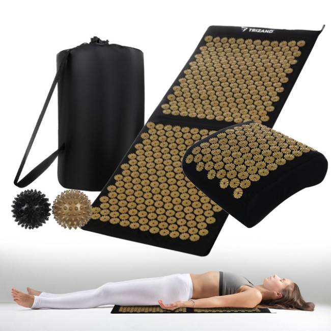 Масажний коврик акупунктурний для точкового масажу з подушкою Trizand + 2 масажні кульки (23375)