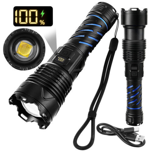 Тактичний LED ліхтар 1500 lm, акумулятор 5000 mAh, USB-C, зум, водостійкий, з функцією Power Bank. Trizand 26949