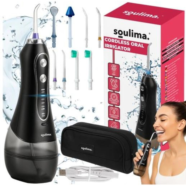 Бездротовий іригатор PowerClean — професійна гігієна порожнини рота та носа у вас вдома. Перетворіть щоденний догляд за порожниною рота на комфортний ритуал разом з інноваційним іригатором SOULIMA PowerClean — розумним пристроєм для комплексної очистки зубів, ясен, язика та навіть носових проходів. Потужний тиск води, універсальні насадки та 5 режимів роботи — усе для вашого здоров'я та комфорту.