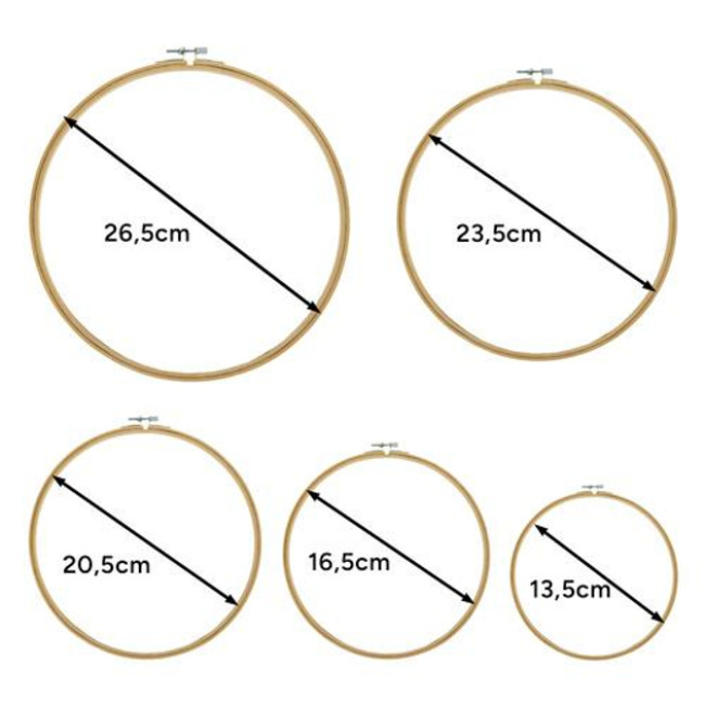 - Діаметр п'ялець: 11,3 см, 14,5 см, 18,5 см, 22,5 см, 25,6 см