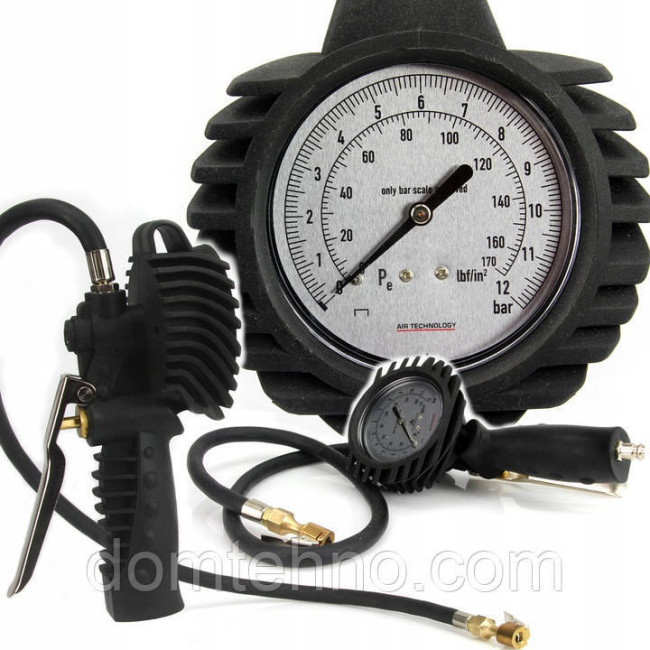 Особливою перевагою даного інструменту є його захищеність - рифлена гума барометра не тільки запобігає пошкодженню при випадкових падіннях, але й додає додаткового комфорту при ручній роботі. Завдяки діапазону вимірювання від 0 до 12 бар, пістолет підходить для більшості автомобільних складових.