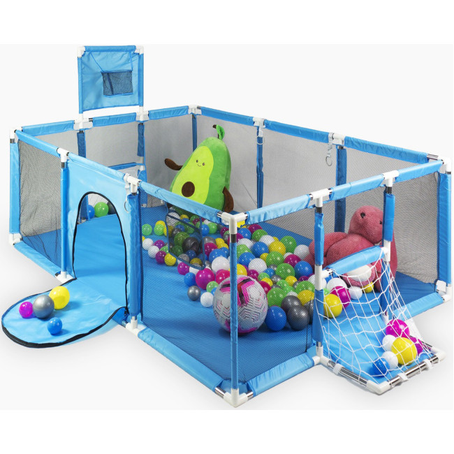 З'єднайте навчання та розвиток з грою. Завдяки корзині для баскетболу та воротам для футболу дитина розвиває координацію рухів, влучність та спритність. Гра з кульками в сухому басейні стимулює креативність та підтримує сенсорний розвиток.