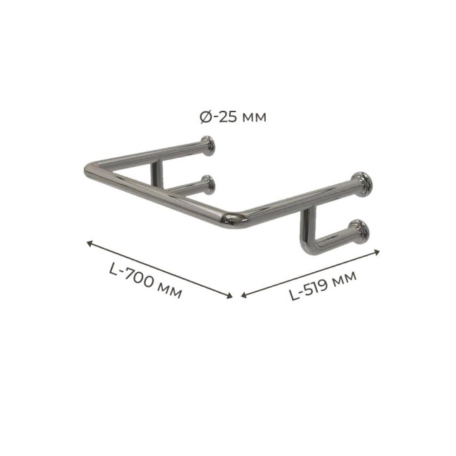 Цей поручень розроблений спеціально для людей з інвалідністю, щоб забезпечити максимальний комфорт та безпеку при використанні раковини. Виготовлений з якісної нержавіючої сталі, він поєднує в собі міцність і стильний дизайн. Розмір виробу становить 700х519 мм, а діаметр труби - 25 мм, що робить його ідеальним для використання в будь-якому сучасному інтер'єрі.