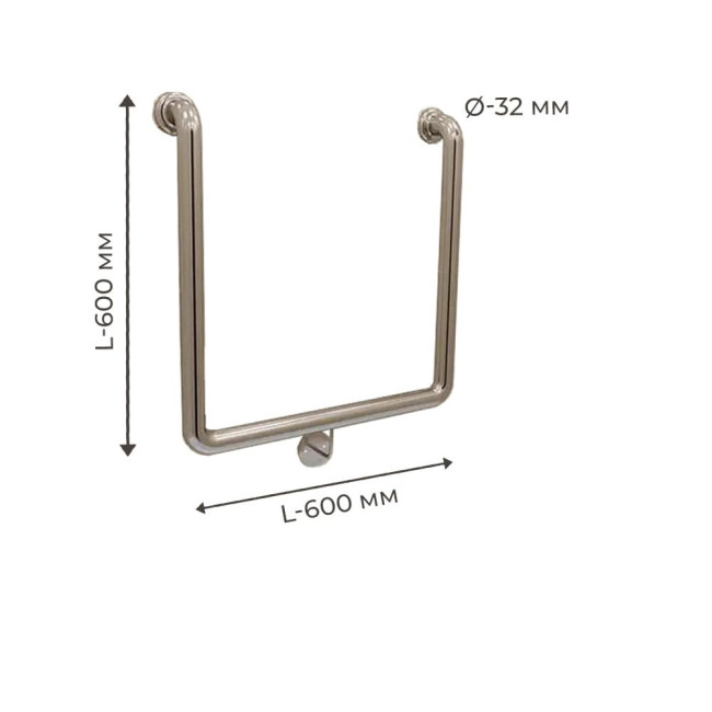 Поручень для людей з інвалідністю (МГН) настінний INVO П-образний, розмір 600х600 мм, D труби - 32 мм