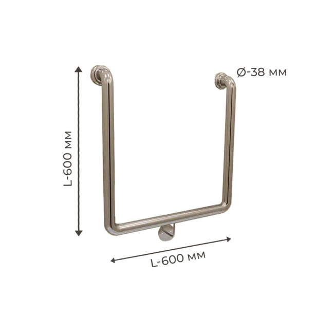 Поручень для людей з інвалідністю (МГН) настінний INVO П-образний, розмір 600х600 мм, D труби - 38 мм