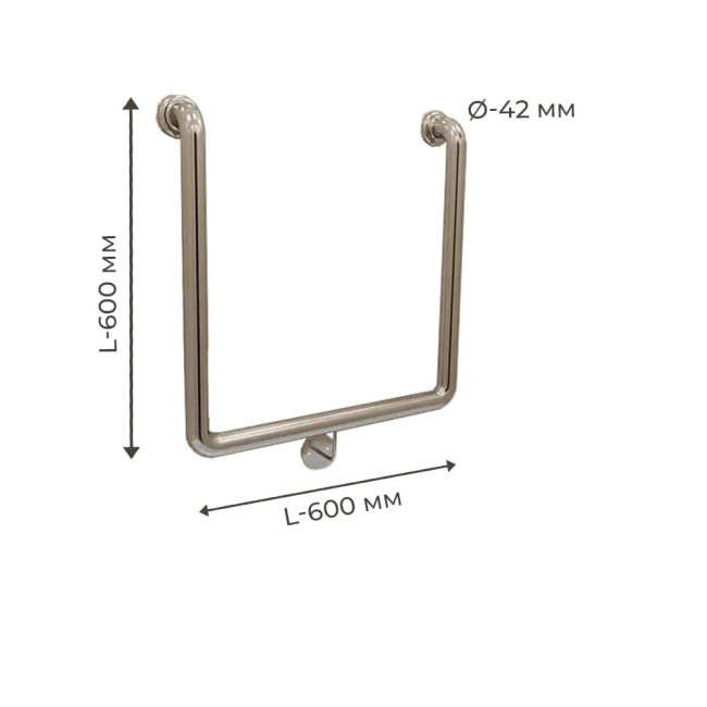 Поручень для людей з інвалідністю (МГН) настінний INVO П-образний, розмір 600х600 мм, D труби - 42 мм