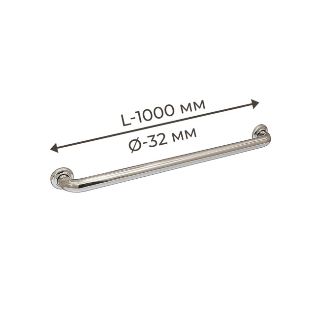 Поручень для людей з інвалідністю (МГН) прямий настінний INVO з нержавіючої сталі, L- 1000 мм, D труби - 32