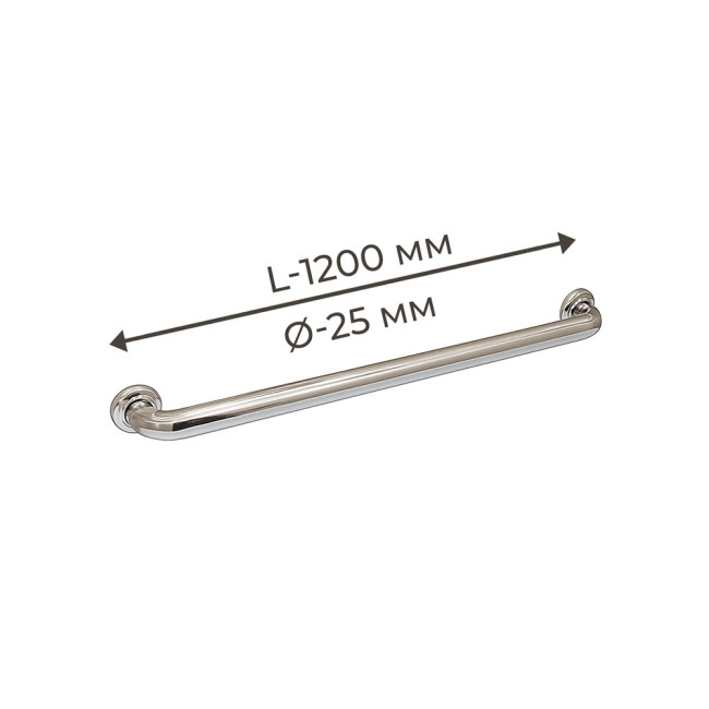 Поручень для людей з інвалідністю (МГН) прямий настінний INVO із нержавіючої сталі, L- 1200 мм, D труби - 25