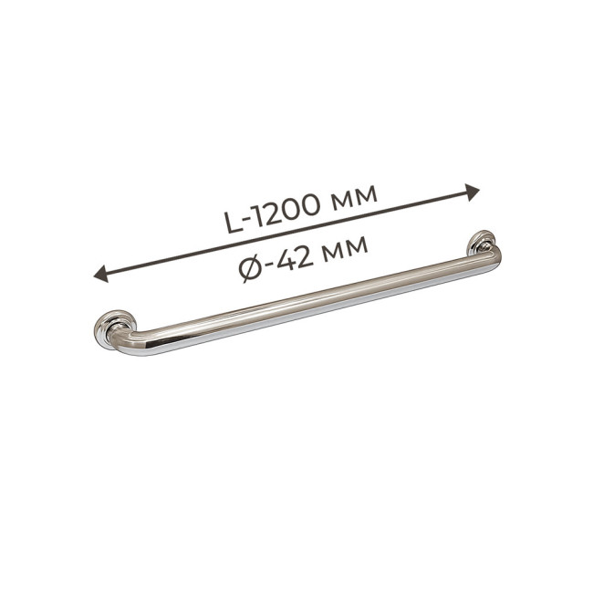 Поручень для людей з інвалідністю (МГН) прямий настінний INVO з нержавіючої сталі, L-1200 мм, D труби - 42