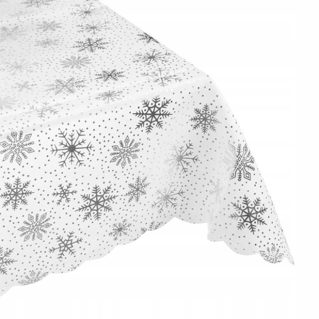 Скатертина різдвяна декоративна, Ruhhy Біла з срібними сніжинками 140 x 220 см