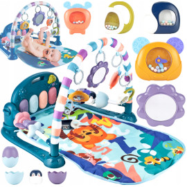 Килимок легко складається двома різними способами: для лежачого малюка, де він може контактувати ніжками з піаніно, і для сидячого. Це дозволяє інтерактивно проводити час і розвивати м'язи спини, стимулюючи малюка до активних рухів.