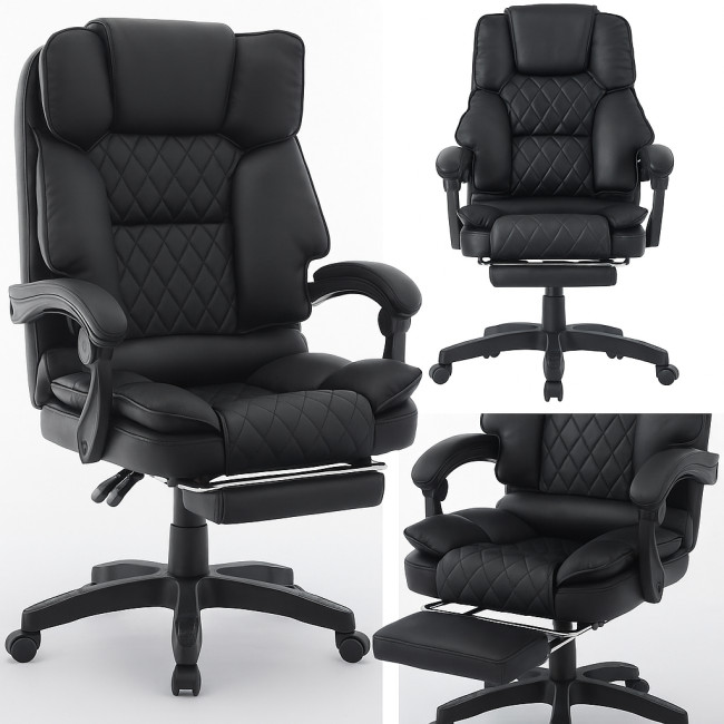 Офісне ергономічне крісло Diego з підставкою для ніг - це зручне комп'ютерне крісло з високою спинкою, виконане в чорному кольорі з високоякісної екошкіри. Це ідеальне рішення для офісу, дому та геймінгу.