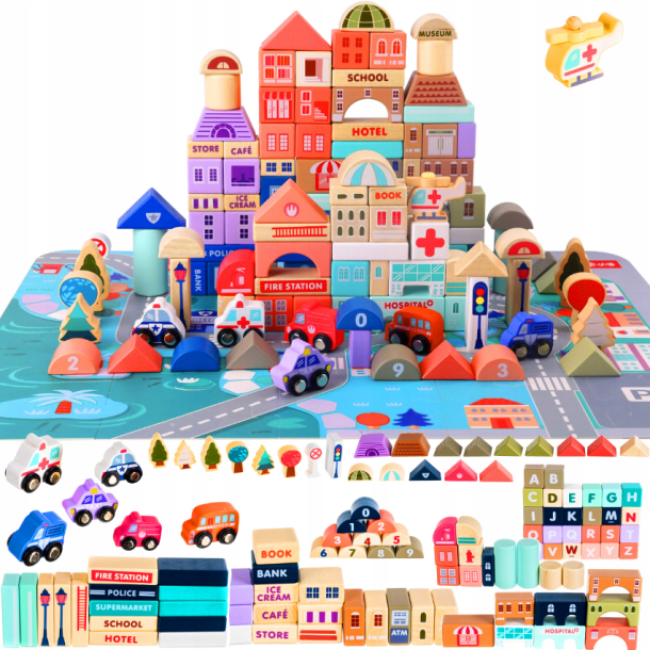 - Образовательная ценность: Благодаря этому конструктору дети узнают об элементах городской инфраструктуры и изучают правила функционирования города, развивают мелкую моторику и узнавание форм и цветов.