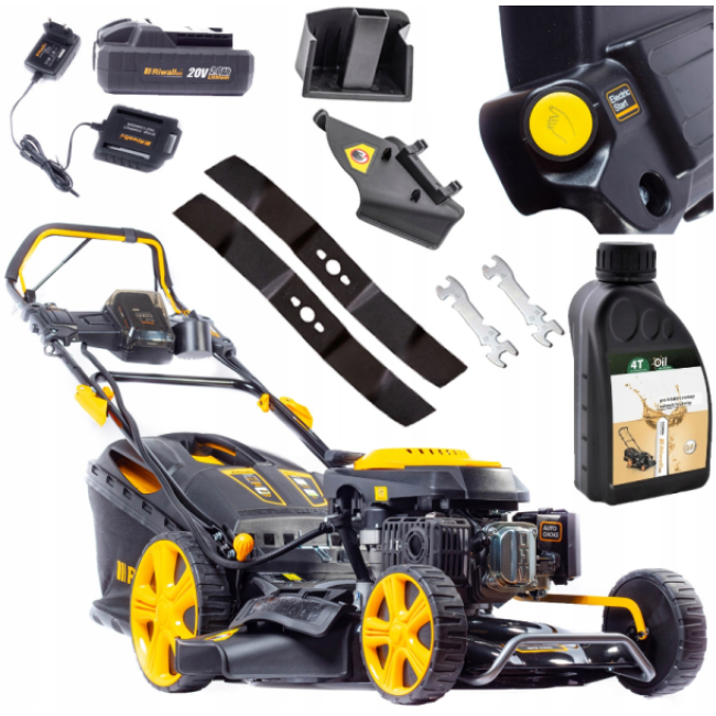 В комплект входят запасной нож, аккумулятор, зарядное устройство и масло для первой замены. Все это делает газонокосилку Riwall идеальным выбором для тех, кто ценит качество и надежность.