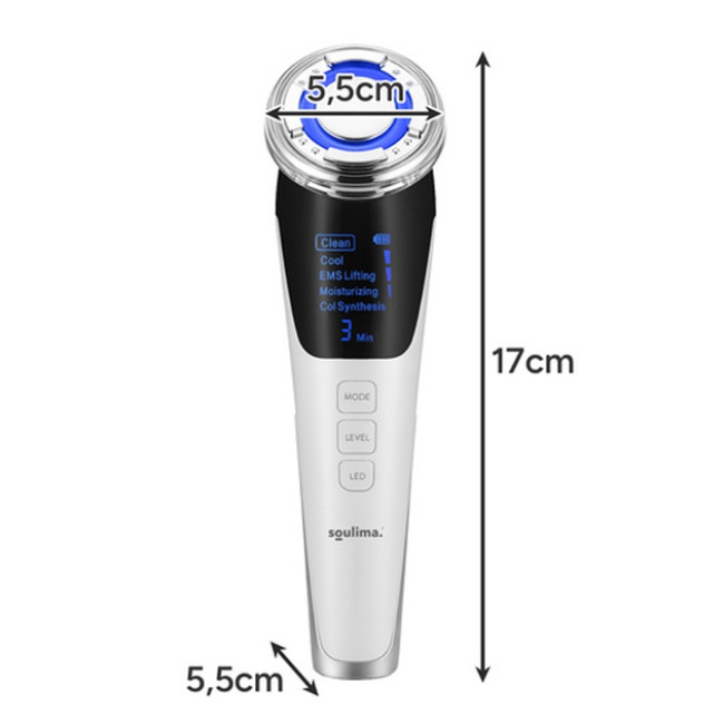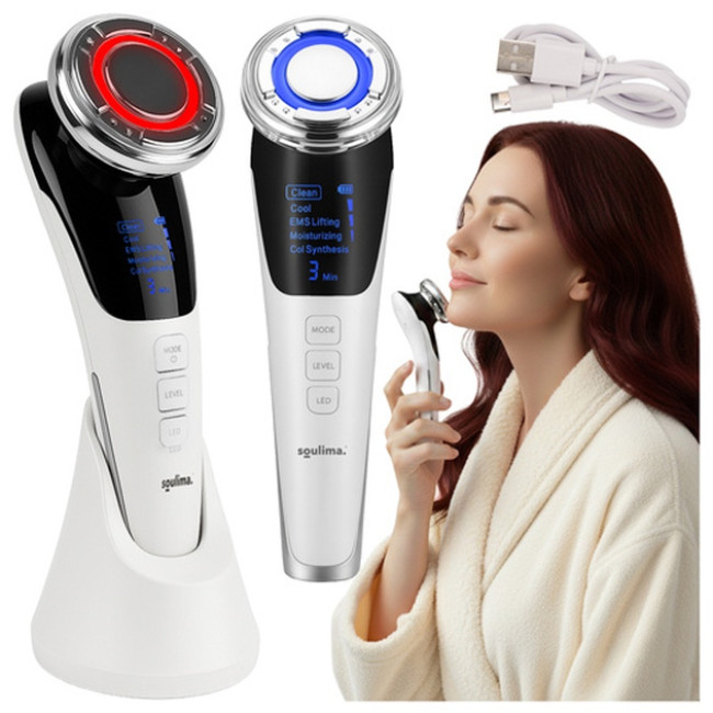 С современным массажером для лица Soulima 5-в-1, теперь вы можете побаловать свою кожу в уюте вашего дома, как в настоящем салоне красоты. Это устройство, сочетающее пять уникальных технологий, обеспечивает комплексный уход за кожей лица, шеи и зоны декольте. Используя современные технологии безигольной мезотерапии, EMS-лифтинга, LED-светотерапии, ультразвукового массажа и термотерапии, этот прибор позволяет вам очистить, омолодить и подтянуть кожу, делая её более упругой и сияющей.