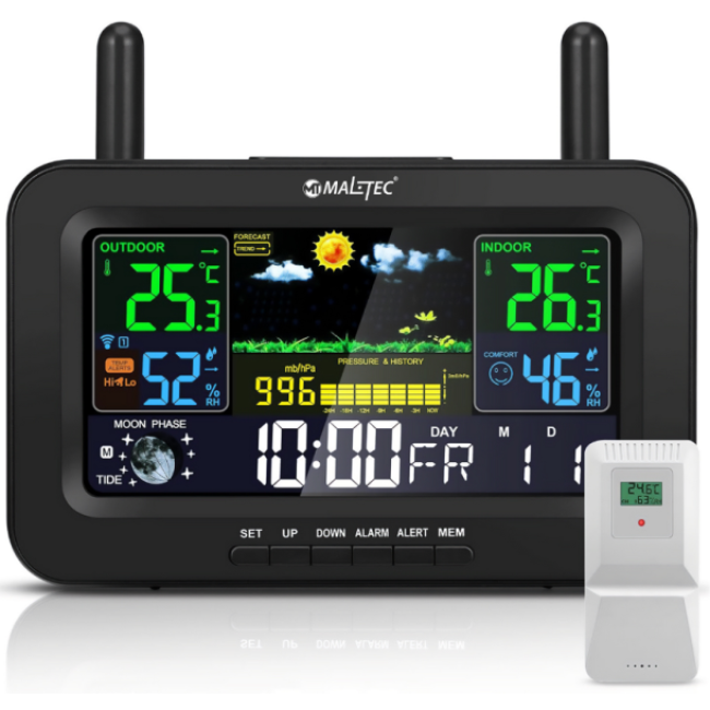Метеостанция Maltec Daily1000M предлагает выдающуюся цену и высокую надежность, что делает её идеальным выбором для каждой семьи, намеренной поддерживать оптимальный микроклимат в доме. Приобретайте Maltec Daily1000M и наслаждайтесь каждым новым днём с полной осведомленностью о погодных условиях!