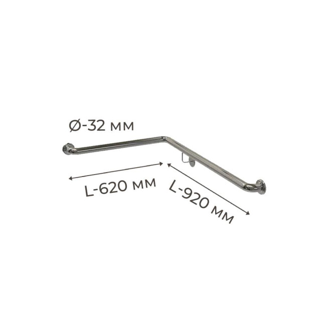 Поручень для людей с инвалидностью (МГН) настенный INVO для внутреннего угла правый и левый, размер 620х920 мм
