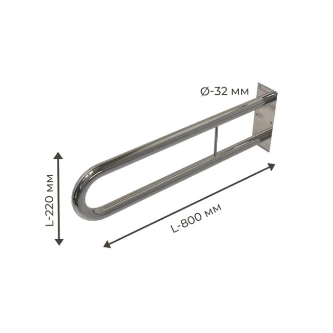 Поручень для людей з інвалідністю (МГН) подвійний INVO стаціонарний, розмір 800х220 мм, D труби - 32 мм