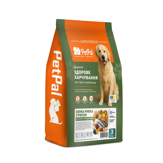 Сухий корм для собак PetPal для малих та середніх порід - свіжа рибка з рисом 3,5 кг (1005)