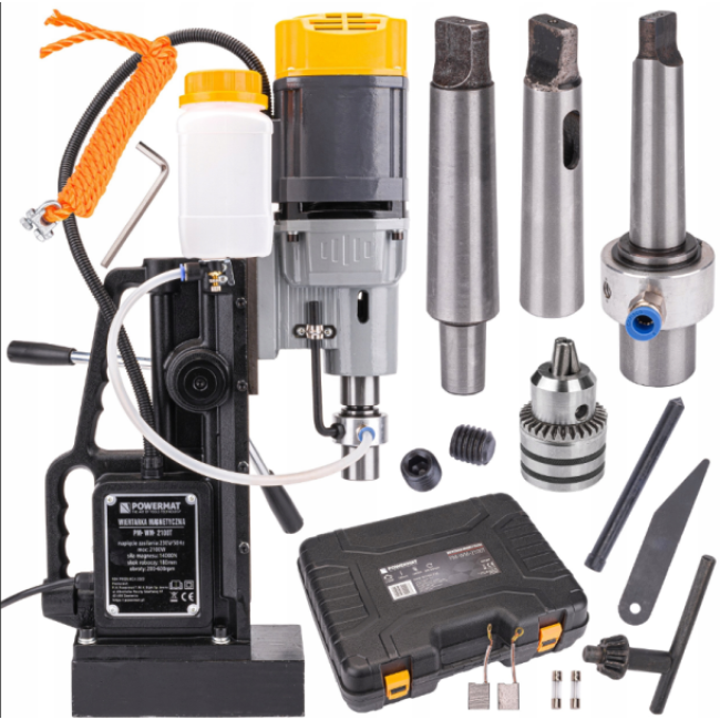 Этот сверлильный станок с магнитным основанием предоставляет вам исключительную прочность и точность, упрощая процессы даже для самых сложных задач. Поставляется с богатым комплектом аксессуаров, таких как электрическая дрель POWERMAT, зубчатый патрон B16, трепановый патрон Weldon, переходники и инструменты для легкой и комфортной работы.