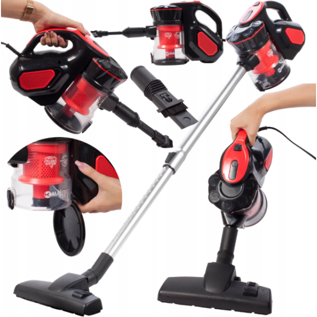 Вертикальный ручной пылесос Maltec 108023 5в1 600 Вт 0.5 л турбоциклонный Черно-красный