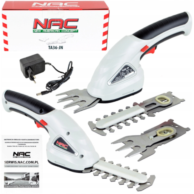 Акумуляторні ножиці NAC — це ідеальний вибір для тих, хто цінує комфорт і ефективність у догляді за садом. Завдяки високоякісному літій-іонному акумулятору, ви отримаєте стабільну роботу протягом 30-35 хвилин від одного заряду. Модель оснащена двома різними лезами: одне для стрижки кущів шириною 100 мм, інше — для трави шириною 70 мм, що дозволяє працювати з різними рослинами і в важкодоступних місцях без зусиль. Система швидкої заміни лез позбавляє вас від необхідності використовувати інструменти, а анатомічна форма ручки та низька вага роблять пристрій ідеальним для комфортного користування протягом тривалого часу.