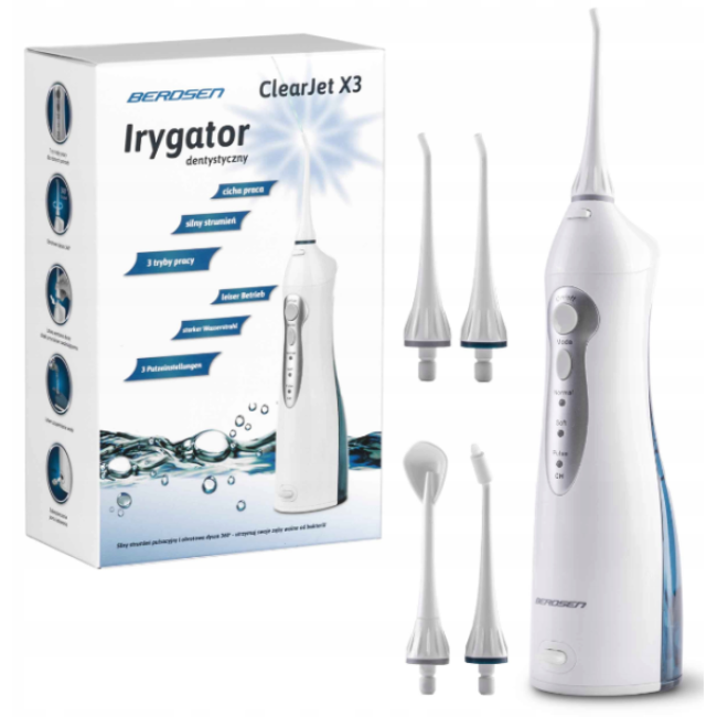 Відчуйте новий рівень догляду за ротовою порожниною з іригатором Berdsen X3, виготовленим у Польщі. Цей неперевершений пристрій забезпечить вам високоякісну гігієну та комфорт, щоразу коли ви його використовуєте. Berdsen X3 знаходиться в авангарді інноваційних рішень для підтримки здоров'я зубів та ясен.