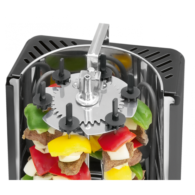 Електрошашличниця CLATRONIC DVG 3686 – це революційний прилад для вашої кухні, який значно полегшить процес приготування та перетворить його на справжнє задоволення. Завдяки її унікальній вертикальній конструкції, гриль забезпечує максимально ефективне використання тепла, рівномірне запікання м'яса чи птиці та запобігає розливанню жиру на нагрівальні елементи.