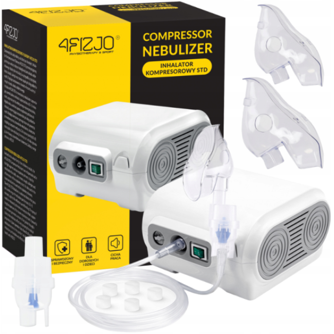 Інгалятор небулайзер 4FIZJO STD — це невід'ємний помічник у будь-якому домогосподарстві. Сучасна техніка, включена у цей пристрій, забезпечує швидке розпилення лікарських засобів у формі дрібнодисперсного аерозолю, який легко проникає в усі відділи респіраторного тракту. Його компактний розмір означає, що ви можете вирушити у подорож та мати впевненість, що завжди матимете під рукою свій інгалятор.