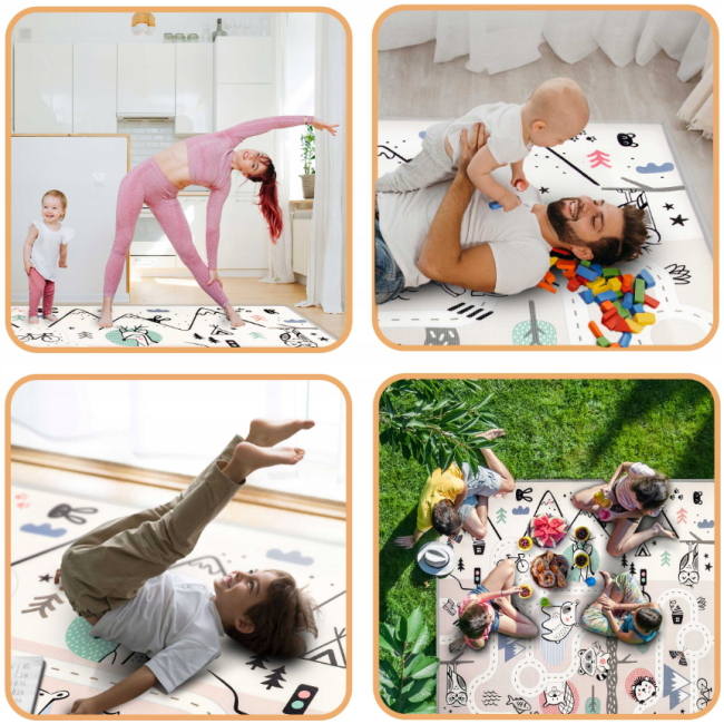 Виготовлений з піноматеріалу XPE найвищої якості без запаху, безпечного для вашої дитини. Дуже товстий поролон (1,5 см!) пом'якшує падіння на твердій підлозі.