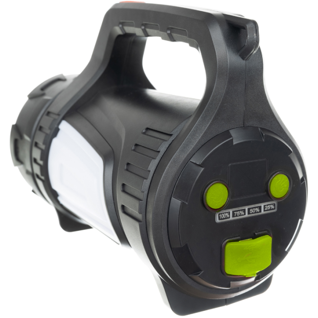 Його дизайн та функції роблять його незамінним. Міцний, водо- та пиленепроникний зовнішній ліхтар із зручним керуванням та потужним світловим потоком 1200 лм освітить будь-яке місце. Біле та червоне бічне підсвічування дозволить використовувати його, наприклад, у складних ситуаціях, коли потрібна допомога. Потужного акумулятора вистачає на 6-8 годин безперервної роботи, тобто за потреби навіть цілу ніч. Наочний індикатор заряду акумулятора на задній панелі дозволить швидко оцінити ступінь заповнення акумулятора. Функція powerbank означає, що ви завжди зможете зарядити, наприклад телефон. Крім того, ліхтар має зручну ручку для перенесення та плечовий ремінь у комплекті.