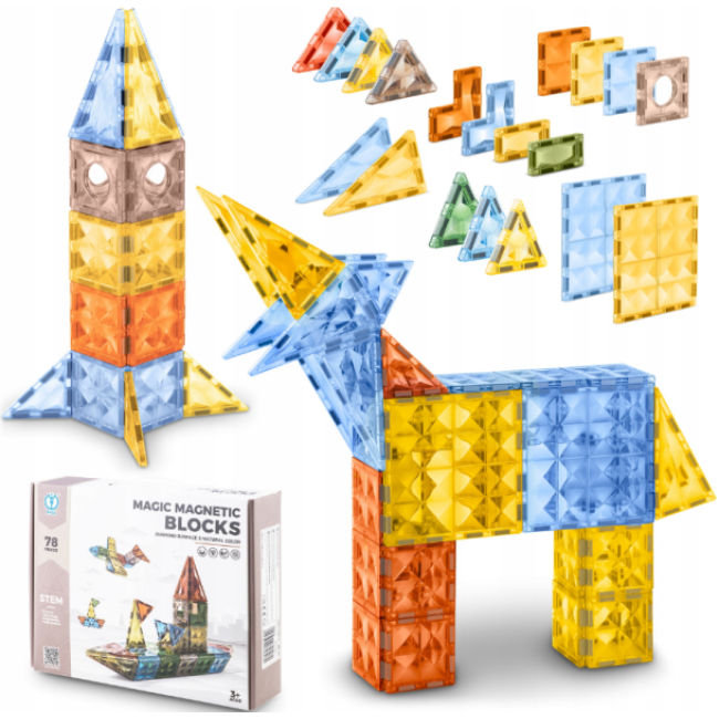 Магнітний конструктор RicoKids — це інноваційний інструмент для навчання, розвитку та розваг вашої дитини. Цей набір з 78 яскравих і багатокольорових частин стане чудовою основою для нескінченної творчої гри, стимулюючи уяву та креативність малечі. Конструктор надає можливість дітям відчути себе справжніми інженерами, створюючи різноманітні моделі та конструкції від найпростішого куба до складних архітектурних шедеврів.