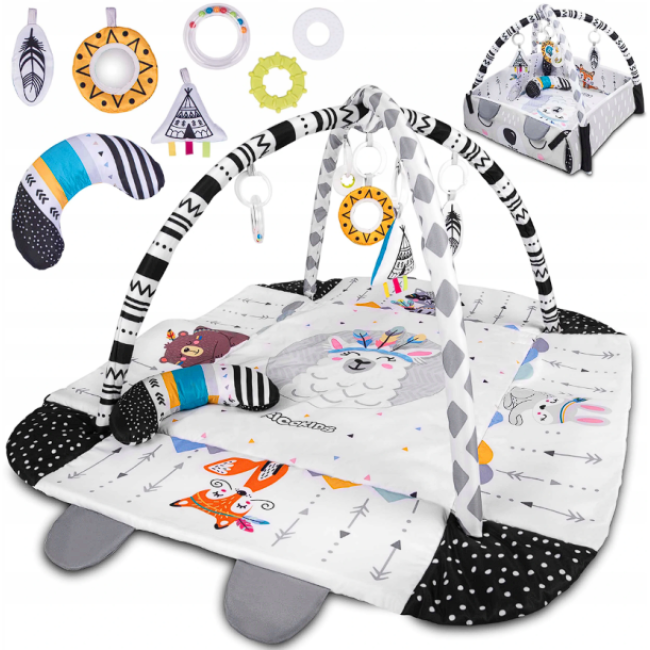 Розвиваючий коврик RICOKIDS Boho — це ваш незамінний помічник у становленні та розвитку вашої дитини з найперших місяців життя. Цей коврик не лише звичайна іграшка, а цілий інтерактивний світ, що сприяє розвитку моторних навичок та уяви вашого малюка. Завдяки великому розміру 110х100 см, коврик надає достатньо простору для безпечної та цікавої гри.