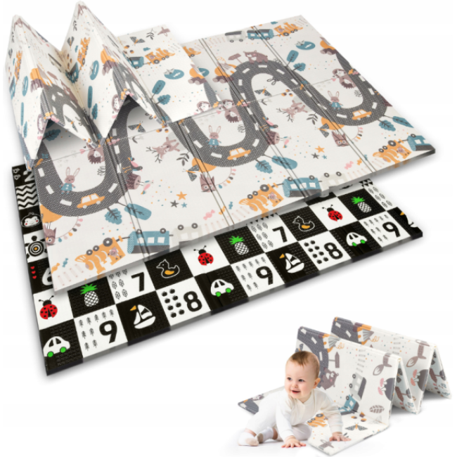 - Завдяки двосторонньому дизайну, різні візерунки зможуть привернути увагу дитини і забезпечать їй різноманітні стимули для розвитку.