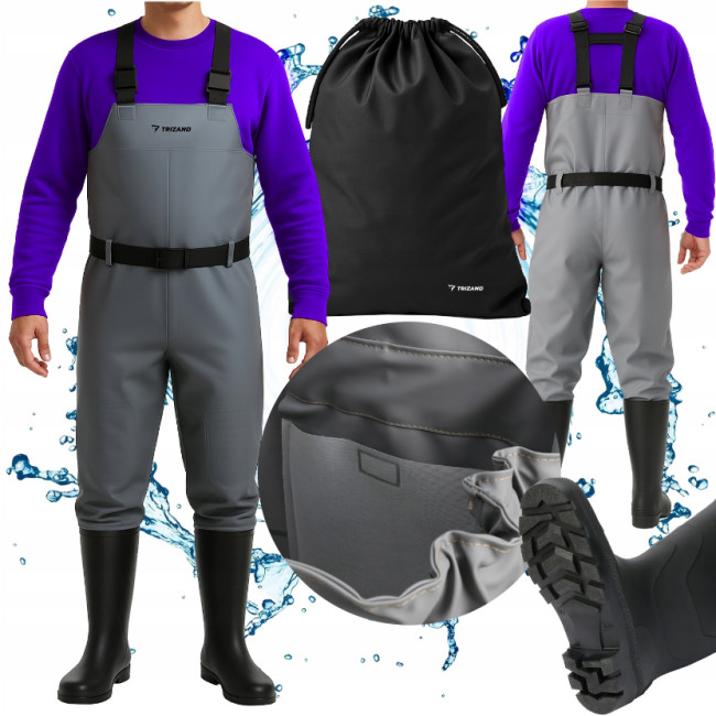 У комплект входять: вейдерси, мішок для зберігання, пояс.