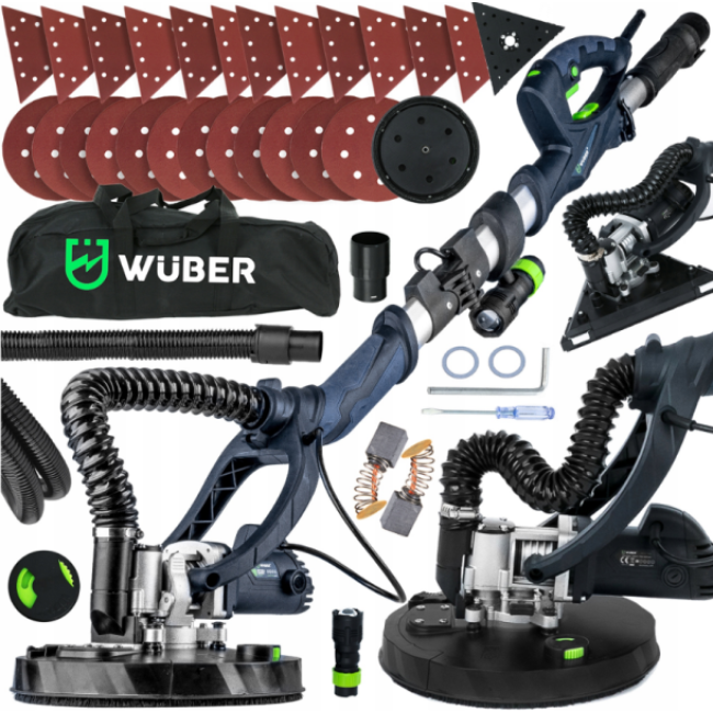 Шліфмашина Wuber з потужністю 1600 Вт та змінними насадками, включно з круглою та трикутною головками, пропонує безперервну ефективність та точність. Його інноваційна система видалення пилу суттєво мінімізує утворення пилу, роблячи роботу більш ефективною та безпечною.