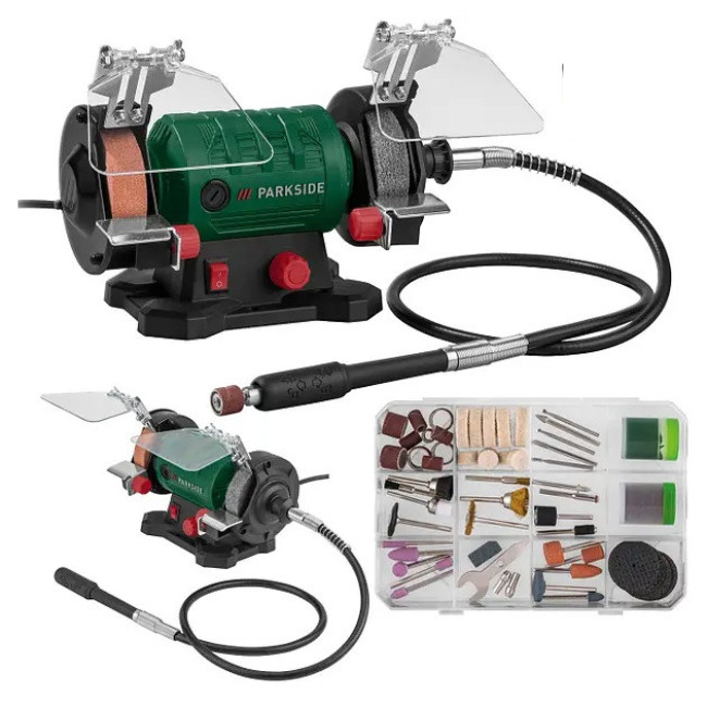 Точильний шліфувальний станок з гнучким валом Parkside 3 в 1 + 103 аксесуарів в футлярі (PDFW 120 B3)