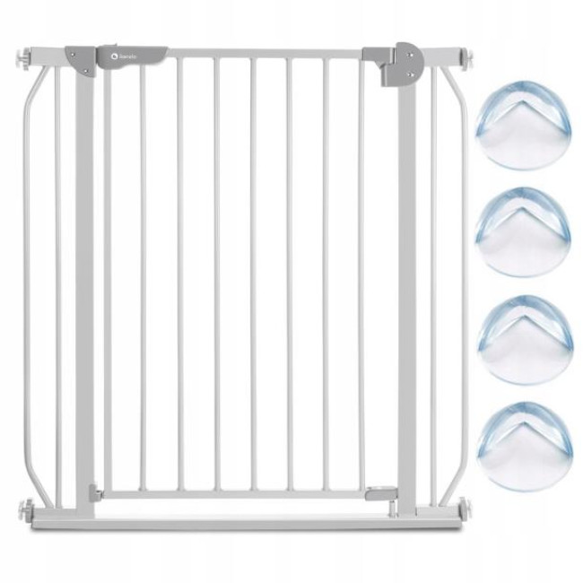 Калитка и рама из прочного металла. Элементы, используемые в воротах, имеют специально округленные овальные формы, так что у ребенка не будет возможности вставлять и зажимать пальцы.